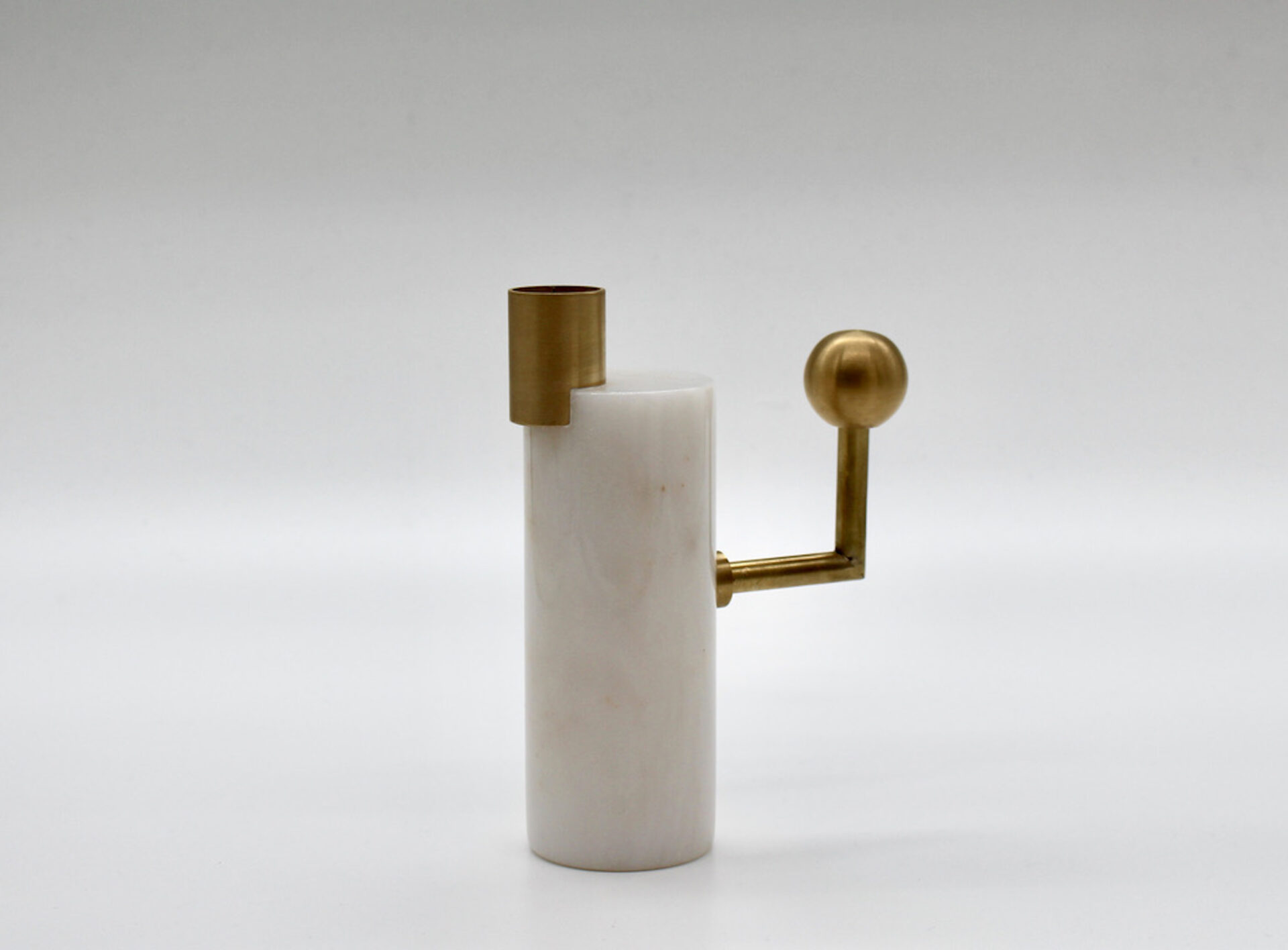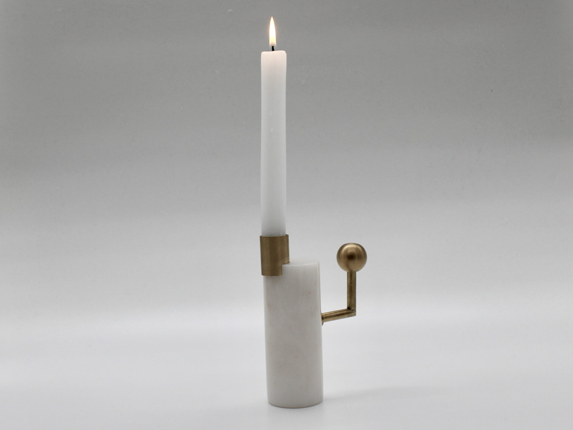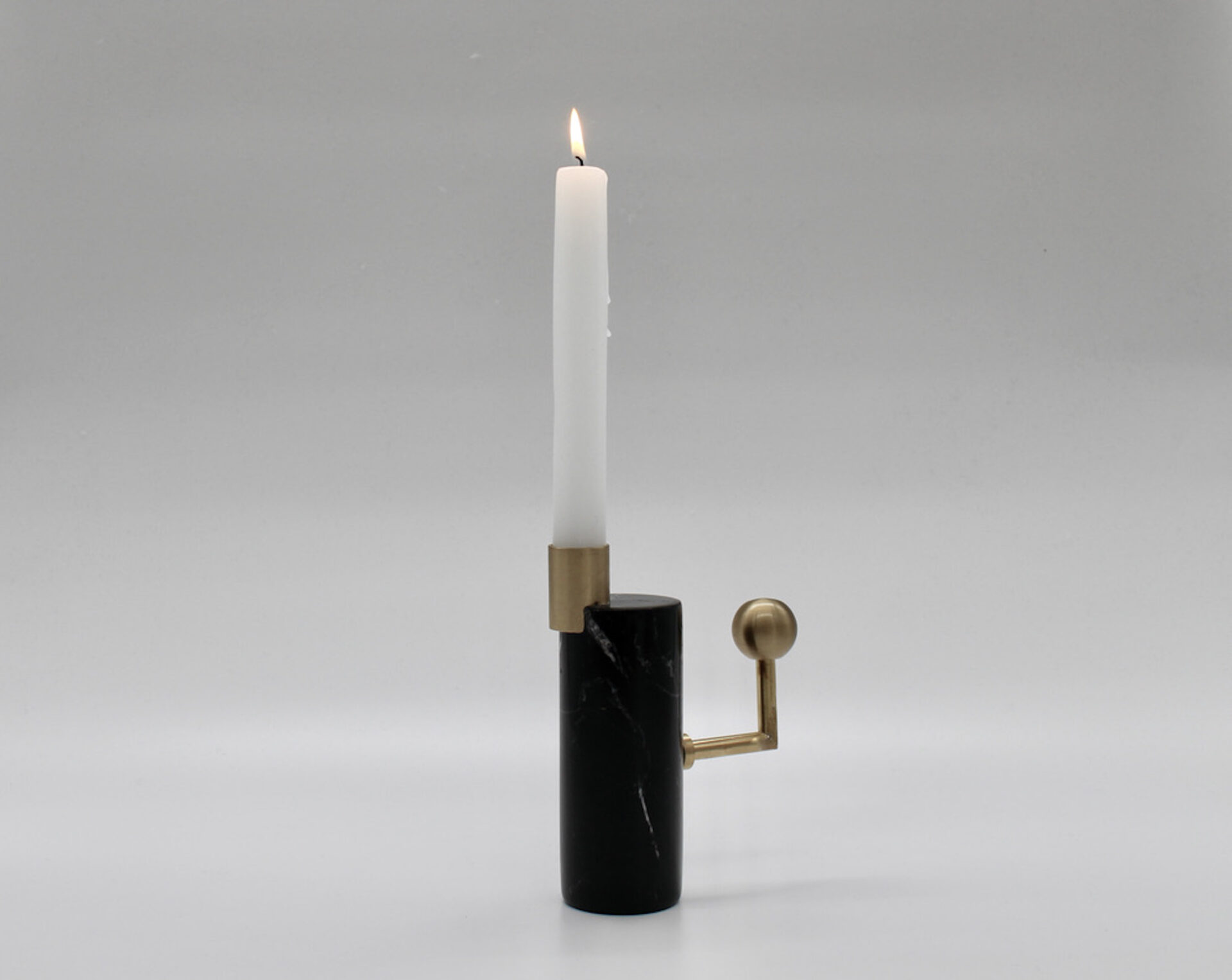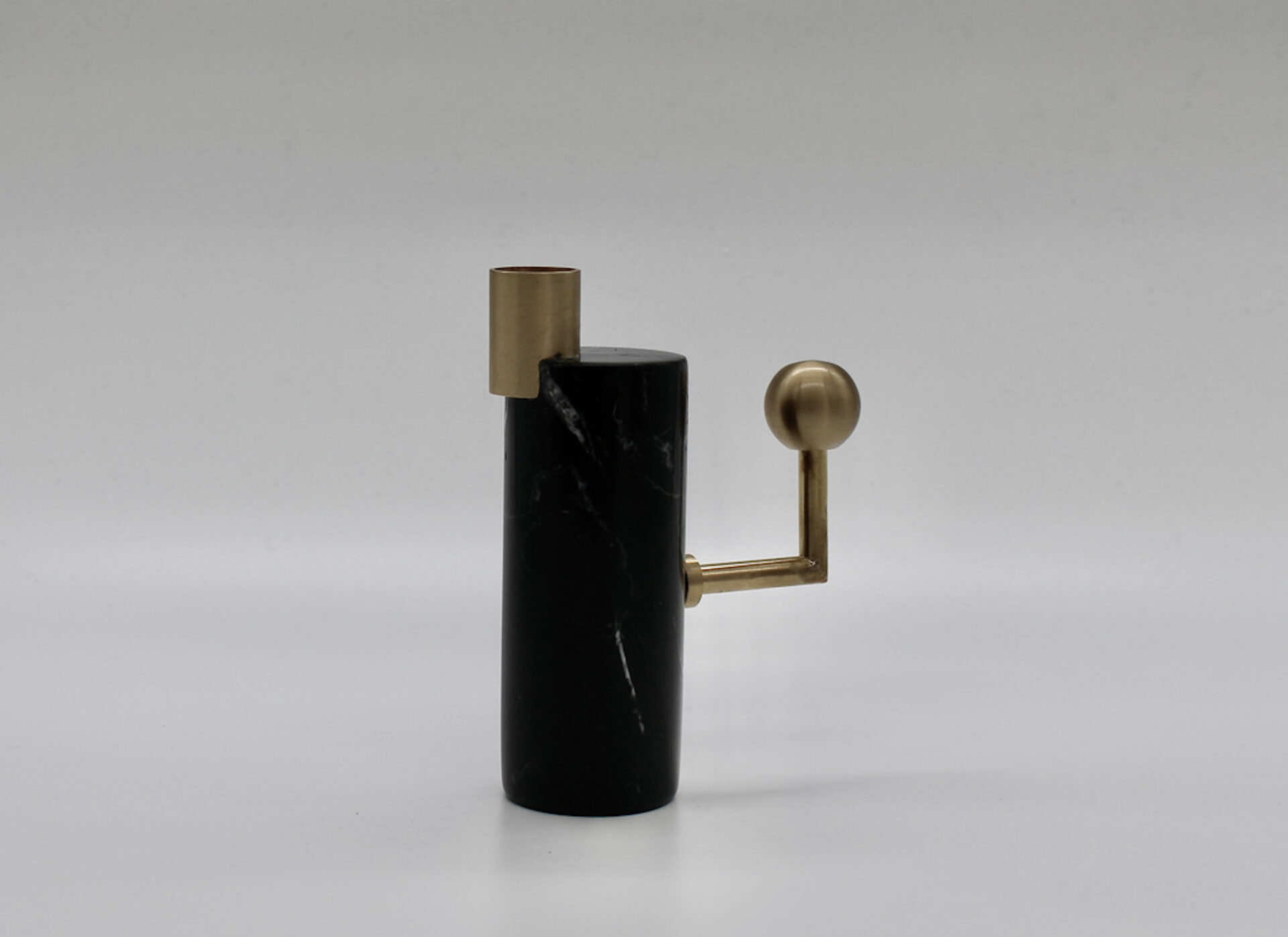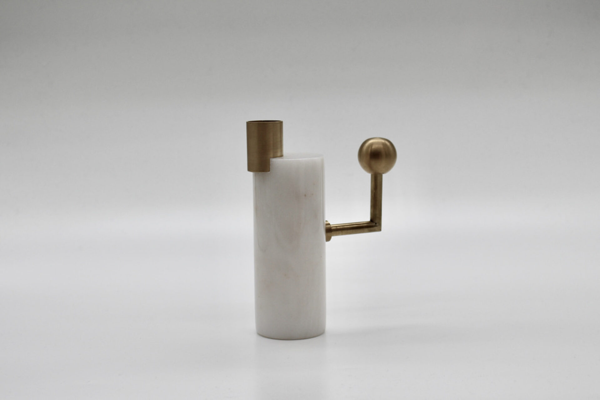 Der Marmor-Kerzenständer Eleganz schafft eine gemütliche und entspannte Atmosphäre in Ihrem Wohnraum. Er ist aus hochwertigem Marmor und aus reinem Messing gefertigt und bietet ein Design, das sich leicht in die übrige Dekoration integrieren lässt.