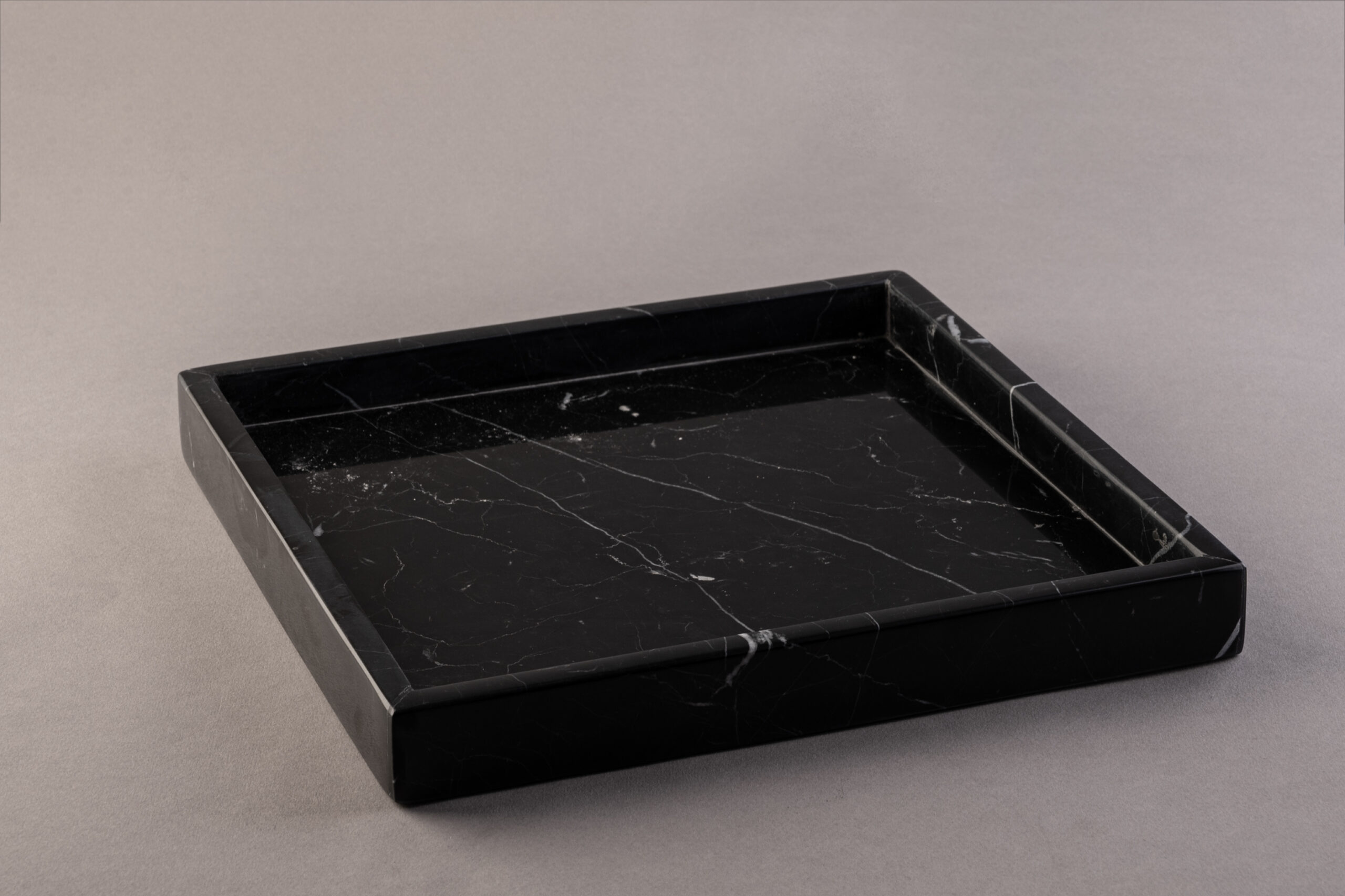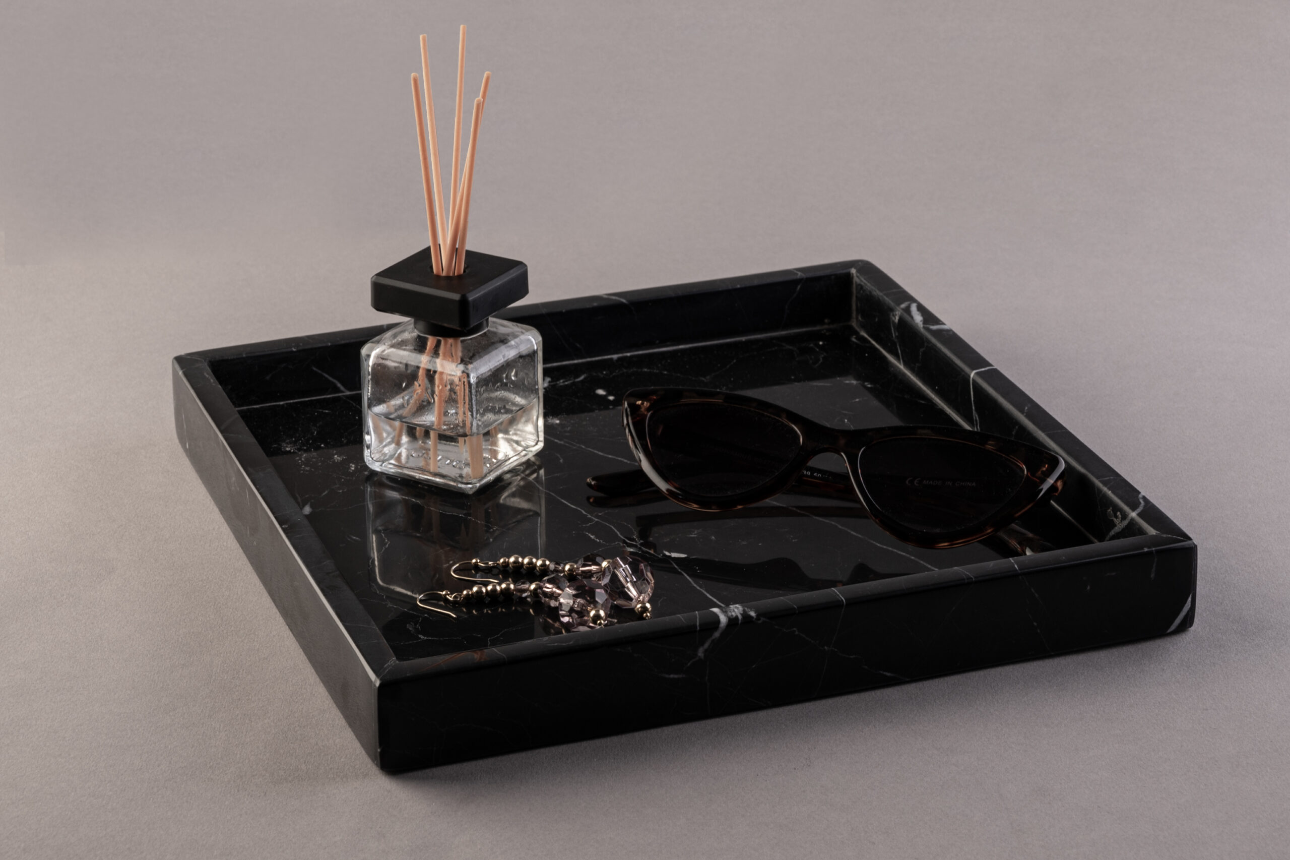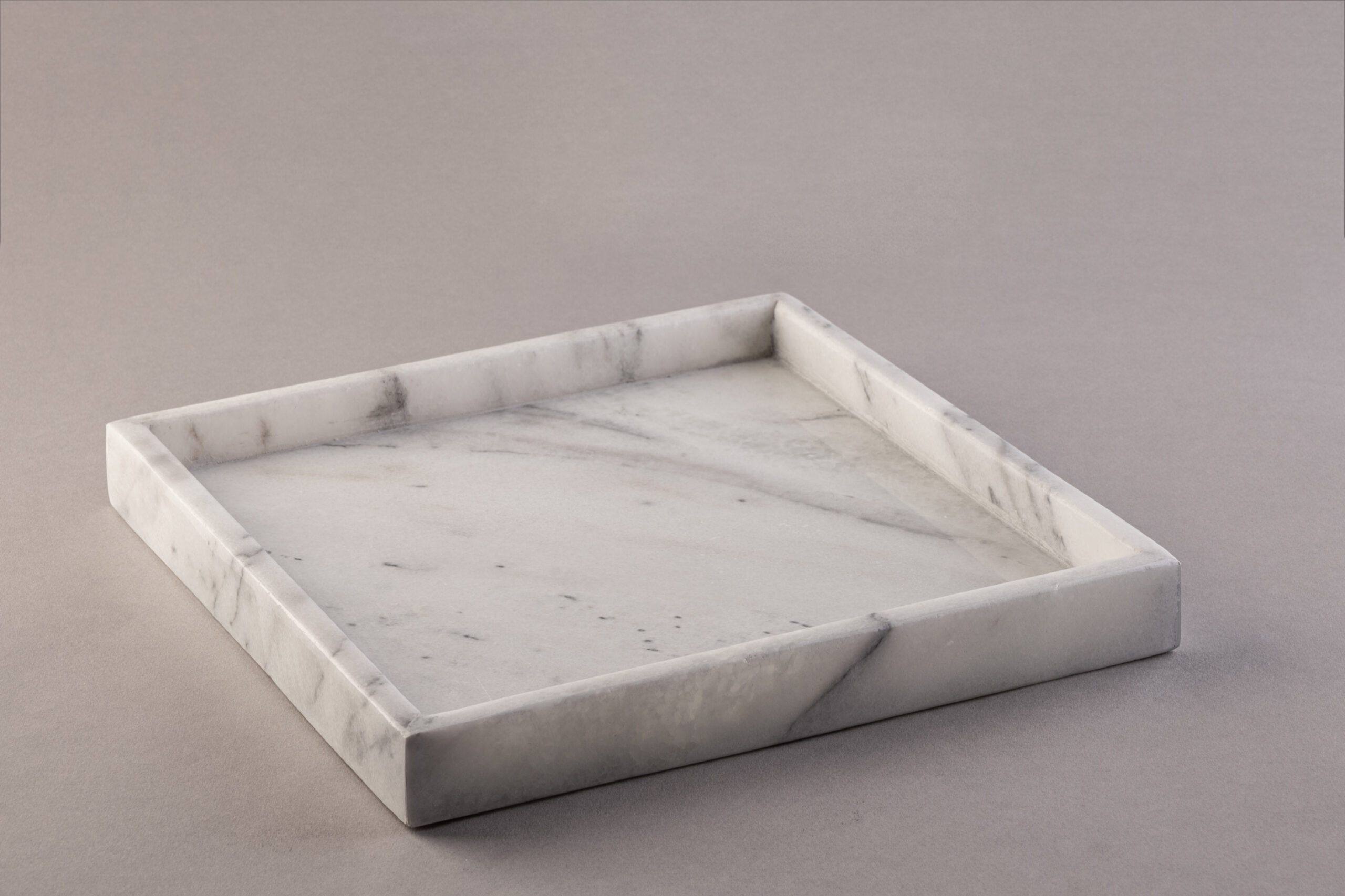Das elegante und kühle Erscheinungsbild, lässt sich mit farbigen Wohnaccessoires wie Vasen und Kerzen perfekt kombinieren. Jedes Marmortablett hat eine einzigartige und natürliche Marmorierung.