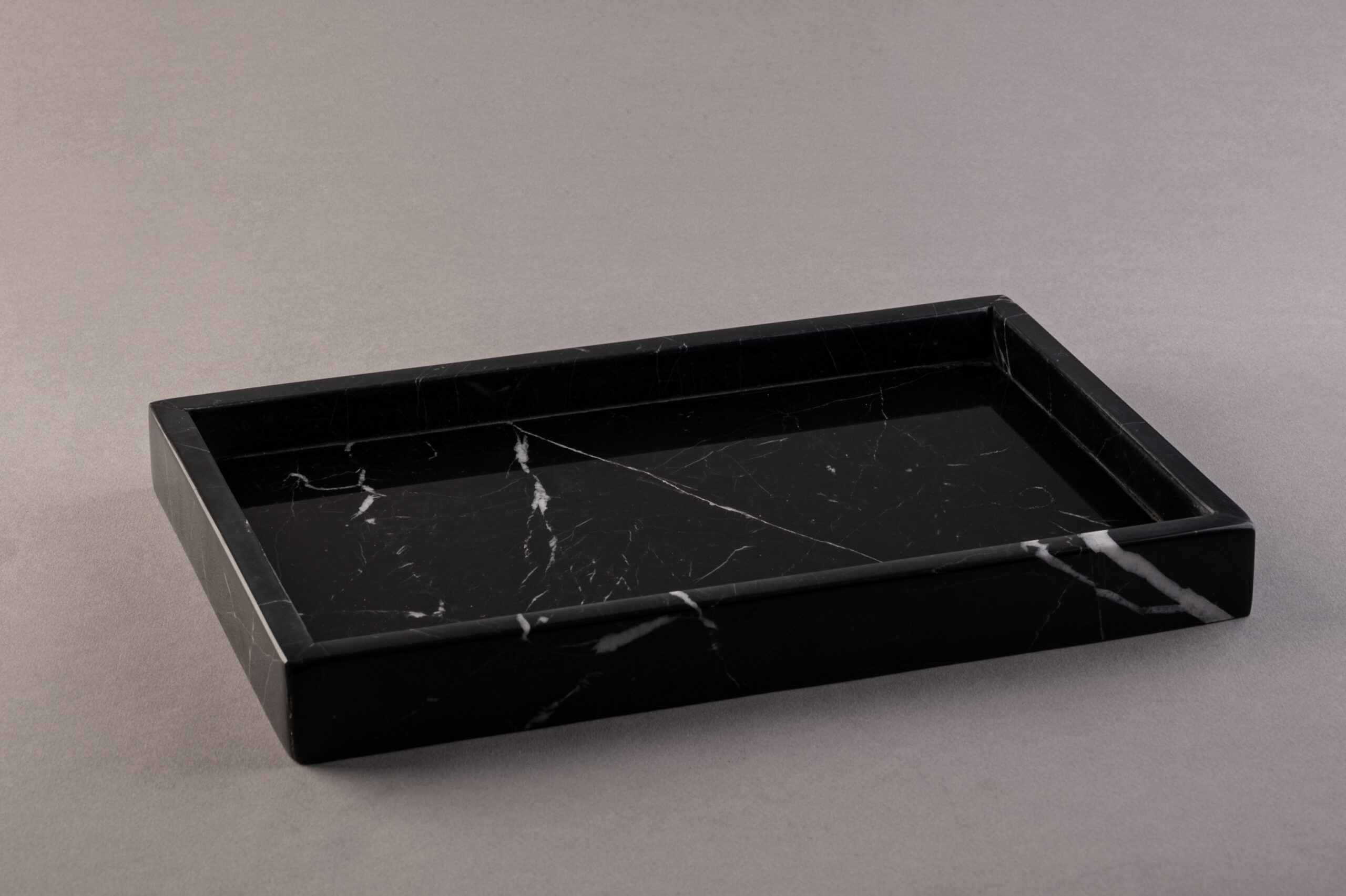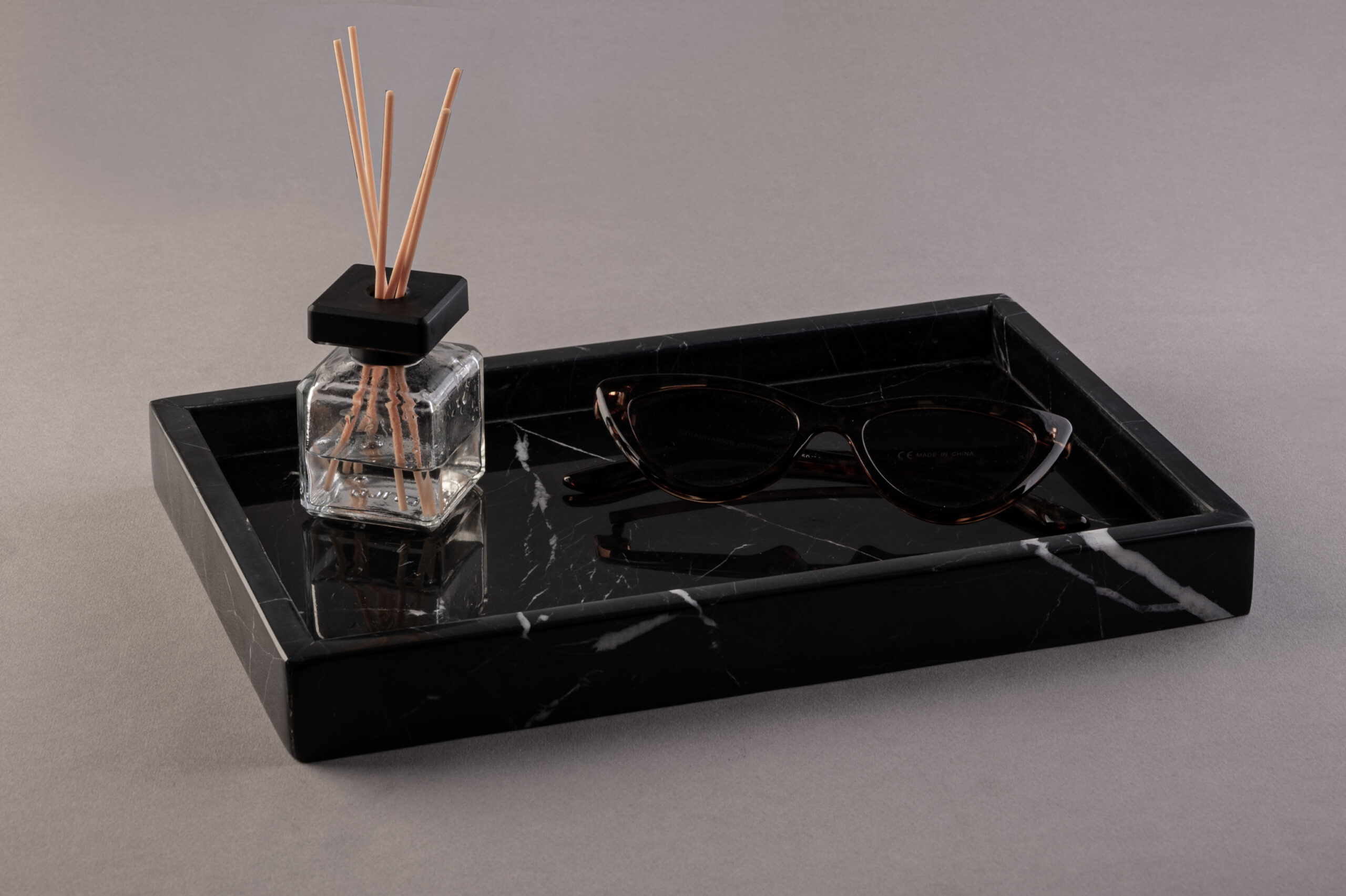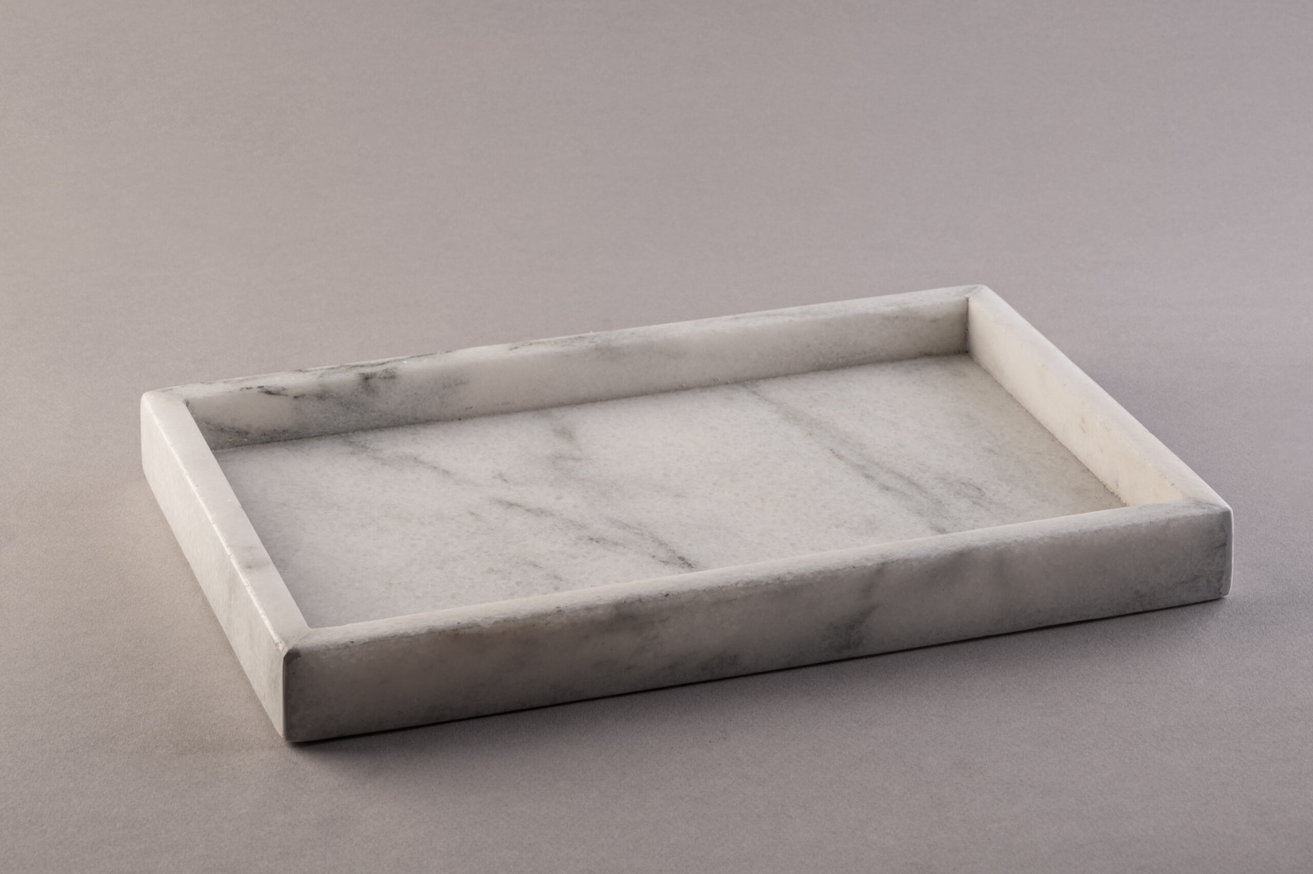 Das elegante und kühle Erscheinungsbild, lässt sich mit farbigen Wohnaccessoires wie Vasen und Kerzen perfekt kombinieren. Jedes Marmortablett hat eine einzigartige und natürliche Marmorierung.