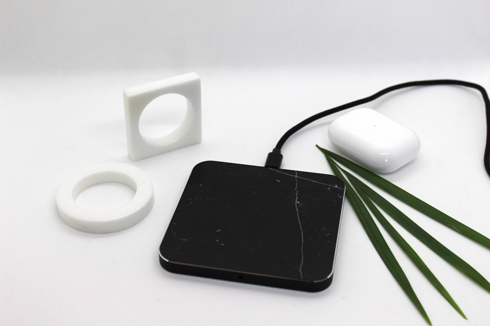 Das stilvolle und praktische Qi-Ladegerät aus echtem Marmor ist ein unverzichtbarer Bestandteil des modernen Lebens mit seinen unterschiedlichen Marmor- und Metalloptionen.