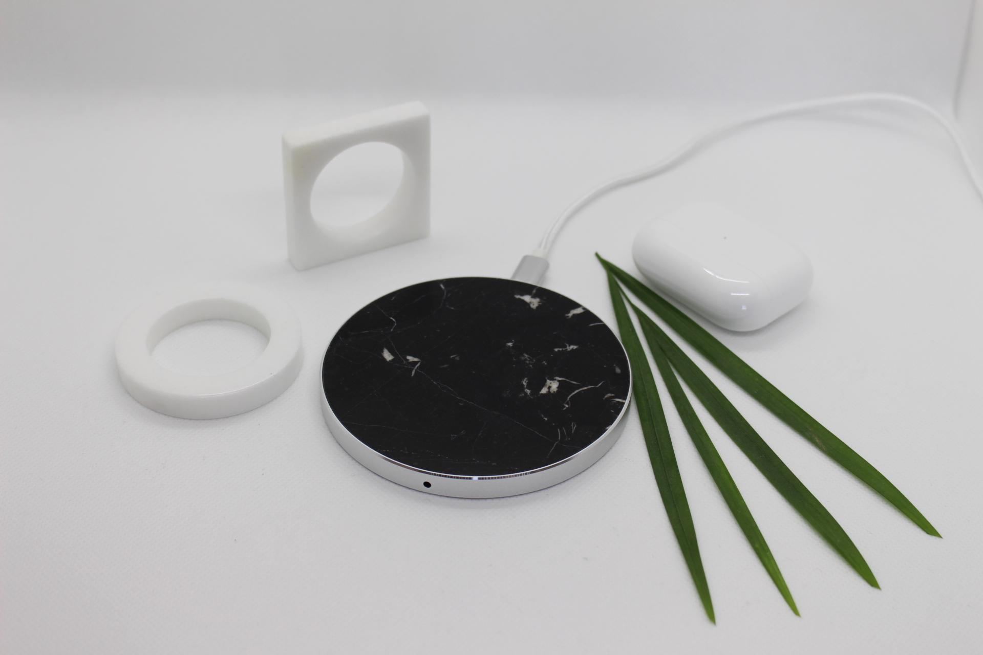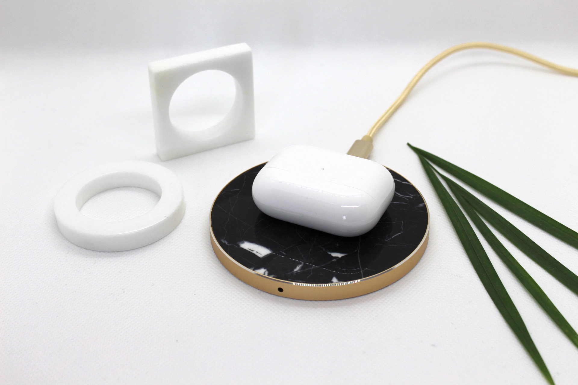 Das stilvolle und praktische Qi-Ladegerät aus echtem Marmor ist ein unverzichtbarer Bestandteil des modernen Lebens mit seinen unterschiedlichen Marmor- und Metalloptionen.