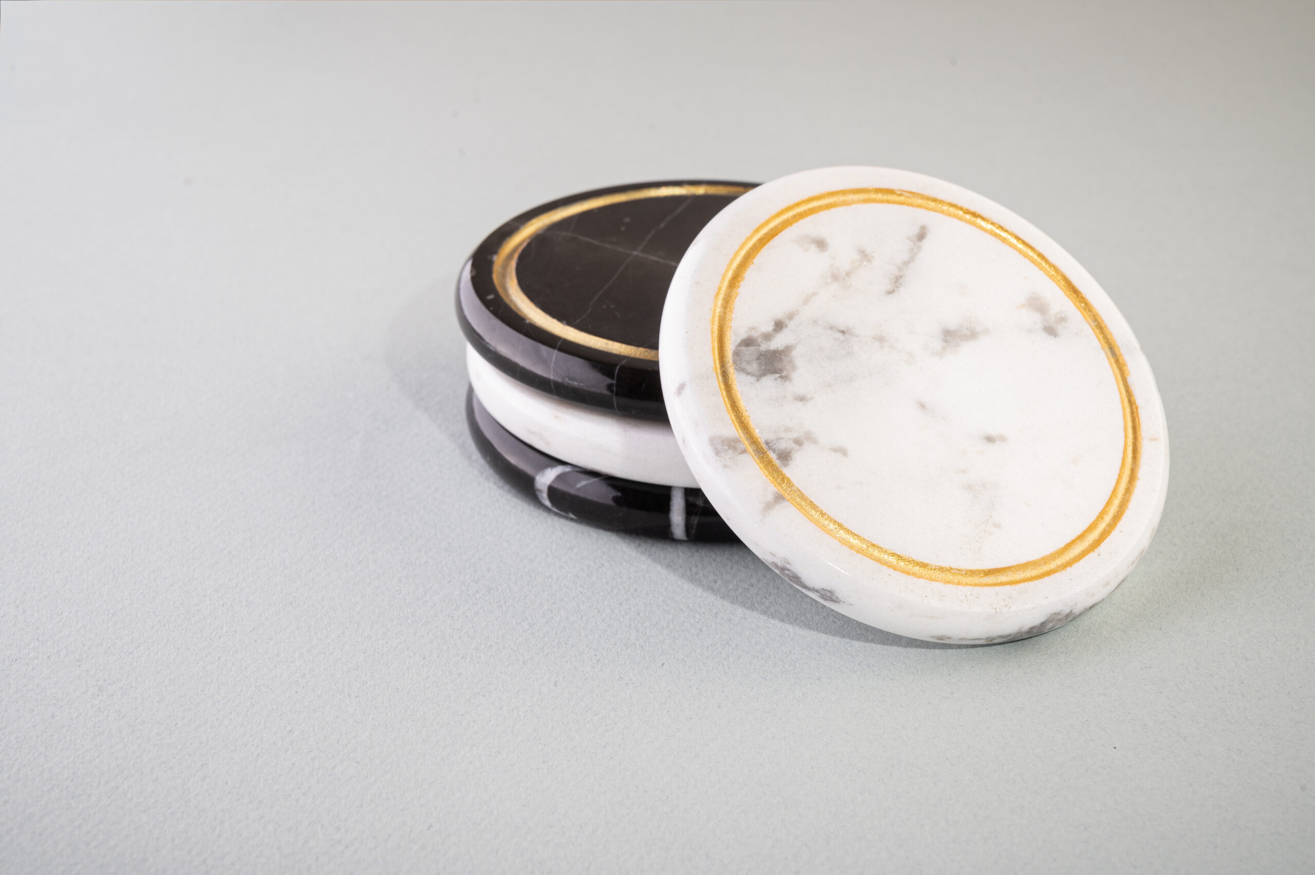 „marmortrend Untersetzer Lifestyle“ begleitet Sie in Ihrem Alltag mit Kombination aus trendsicheren Messing-Details und Marmor.